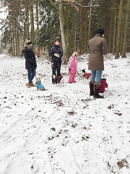 Dieses Angebot ist für Hunde und ihre Menschen, die sich unter Artgenossen wohlfühlen. Es ist aber ausreichend Platz zum Ausweichen vorhanden, so dass beide Parteien (Mensch & Hund) erst einmal die Distanz bekommen, die sie benötigen. Vorgesehen ist, dass die Hunde an der Leine laufen. Falls die Gruppenkonstellation es zulässt, ist ein Freilauf zwischendurch denkbar. Sie sollten einfache Grundkommandos beherrschen, versichert sein, sowie über einen ausreichenden Impfschutz verfügen. Des Weiteren werden jede Menge Leckerchen benötigt.